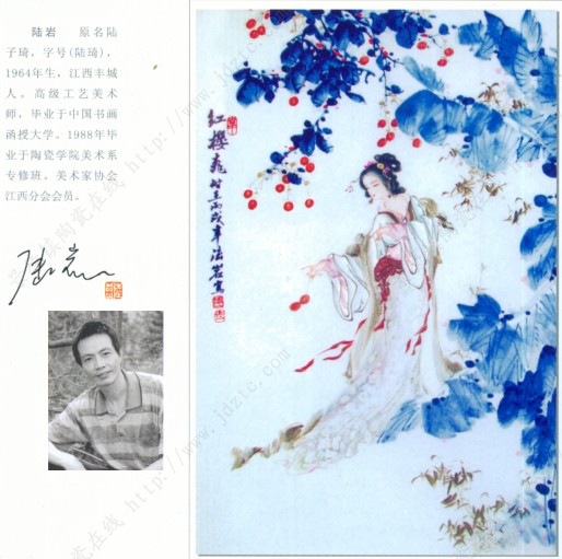 陆岩 原名陆子琦,字号(陆琦),1964年生,江西丰城人。高级工艺美术师,毕业于中国书画函授大学。1988年毕业于陶瓷学院美术系专修班。美术家协会江西分会会员。