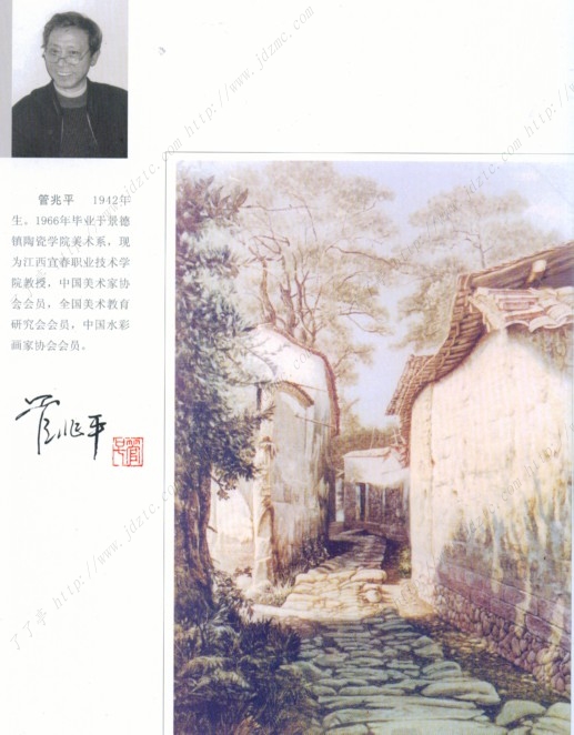 管兆平 1942年生。1966年毕业于景德镇陶瓷学院美术系,现为江西宜春职业技术学院教授,中国美术家协会会员,全国美术教育研究会会员,中国水彩画家协会会员。