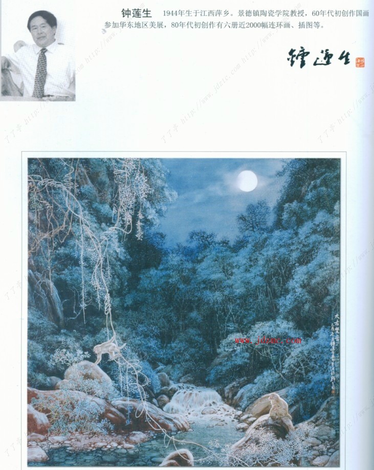 钟莲生 1944年生于江西萍乡。景德镇陶瓷学院教授,60年代初创作国画参加华东地区美展,80年代初创作有六册近2000幅连环画、插图等