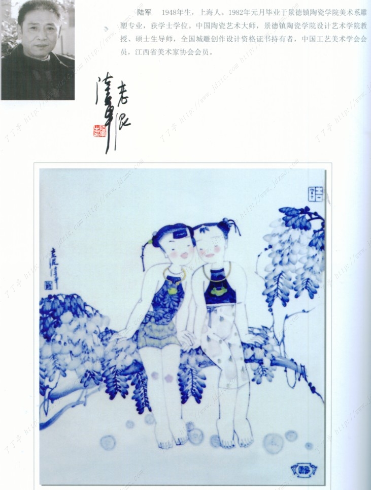 | 陆军 新彩“人物图”瓶 RMB 陆氏童感悟—解读中国陶瓷艺 入四得一,陆军教授釉下彩作 书画家与瓷画家对话之陆军篇 生态雕塑的类型 陆军教授最新资料 走出传统“婴戏”文化的怪圈 纪念毛泽东百年诞辰 喜泳图 陶瓷艺术欣赏 《天真》高温色 陶瓷艺术欣赏 《三希堂童子》 |