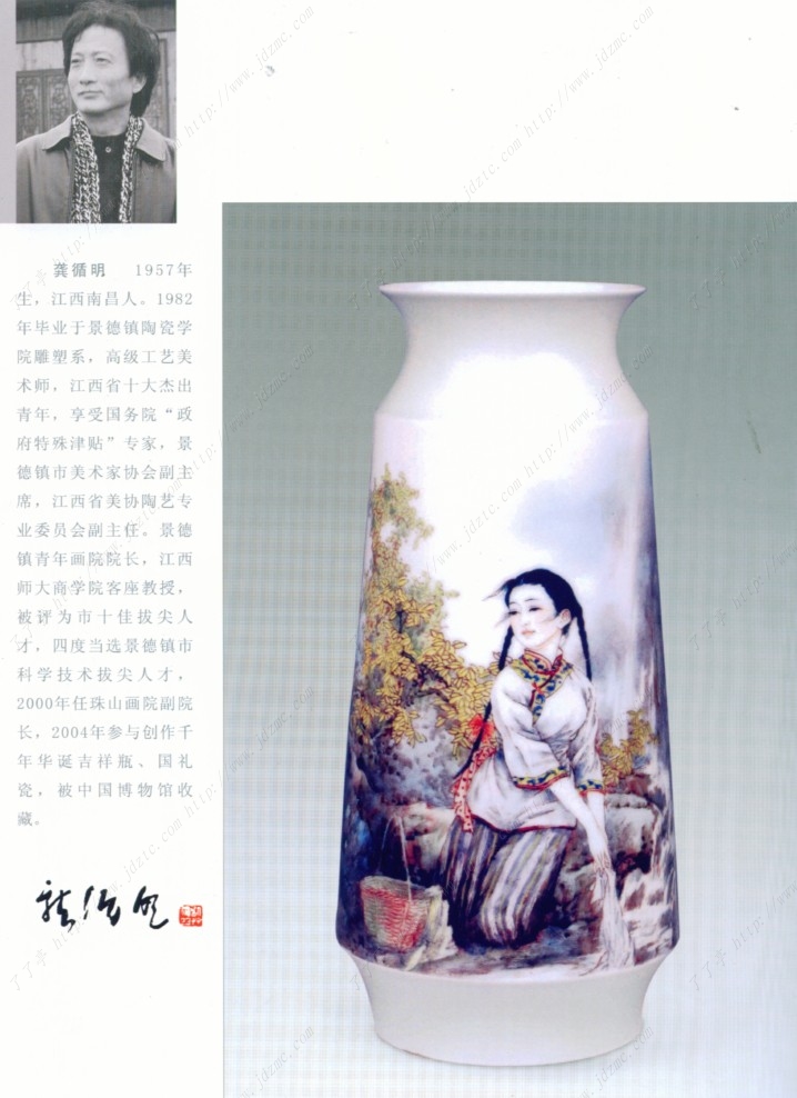 龚循明 1957年生,江西南昌人。l 982年毕业于景德镇陶瓷学院雕塑系,高级工艺美术师,江西省十大杰出青年,享受国务院“政府特殊津贴”专家,景德镇市美术家协会副主席,江西省美协陶艺专业委员会副主任。景德镇青年画院院长,江西师大商学院客座教授,被评为市十佳拔尖人才,四度当选景德镇市科学技术拔尖人才,2000年任珠山画院副院长,2004年参与创作千年华诞吉祥瓶、国礼瓷,被中国博物馆收藏。