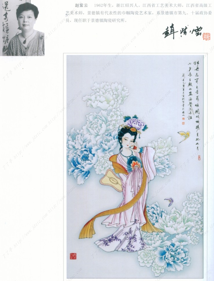 赵紫云 1962年生,浙江绍兴人。江西省工艺美术大师,江西省高级工艺术师,景德镇有代表性的巾帼陶瓷艺术家,系景德镇市第九、十届政协委员,现任职于景德镇陶瓷研究所。
