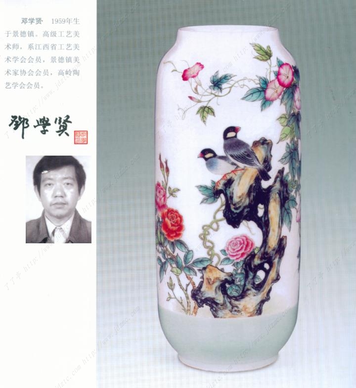 邓学贤 1959年生于景德镇。高级工艺美术师,系江西省工艺美术学会会员,景德镇美术家协会会员,高岭陶艺学会会员。