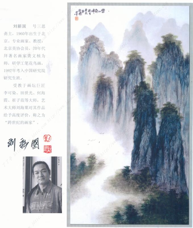 刘新国 号三思斋主,1960年出生于北京。专业画家、教授,北京美协会员,70年代拜著名画家龚文桢为师,研学工笔花鸟画,1987年考入中国研究院研究生班。 受教于画坛巨匠李可染、田世光、何海霞、崔子范等大师,艺术大师刘海粟对其作品给予高度评价,称之为“跨世纪的画家”。