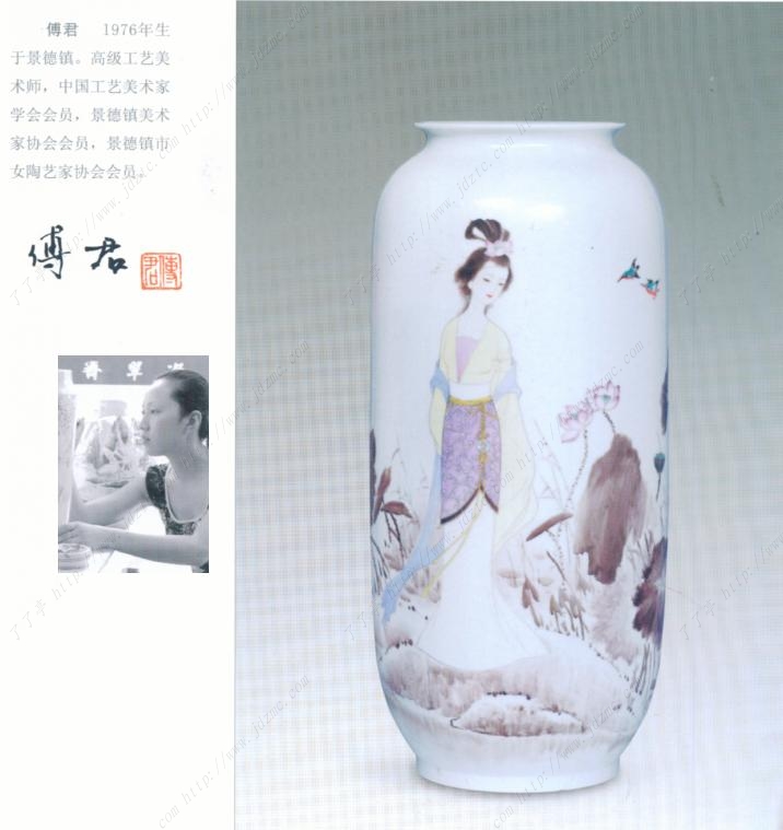傅君 1976年生于景德镇。高级工艺美术师,中国工艺美术家学会会员,景德镇美术家协会会员,景德镇市女陶艺家协会会员。