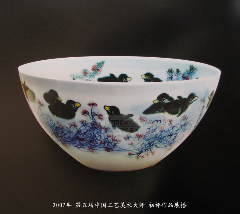 | 釉下综合装饰斗彩瓷钵《春红水暖鸭先知》朱正荣 | |||||