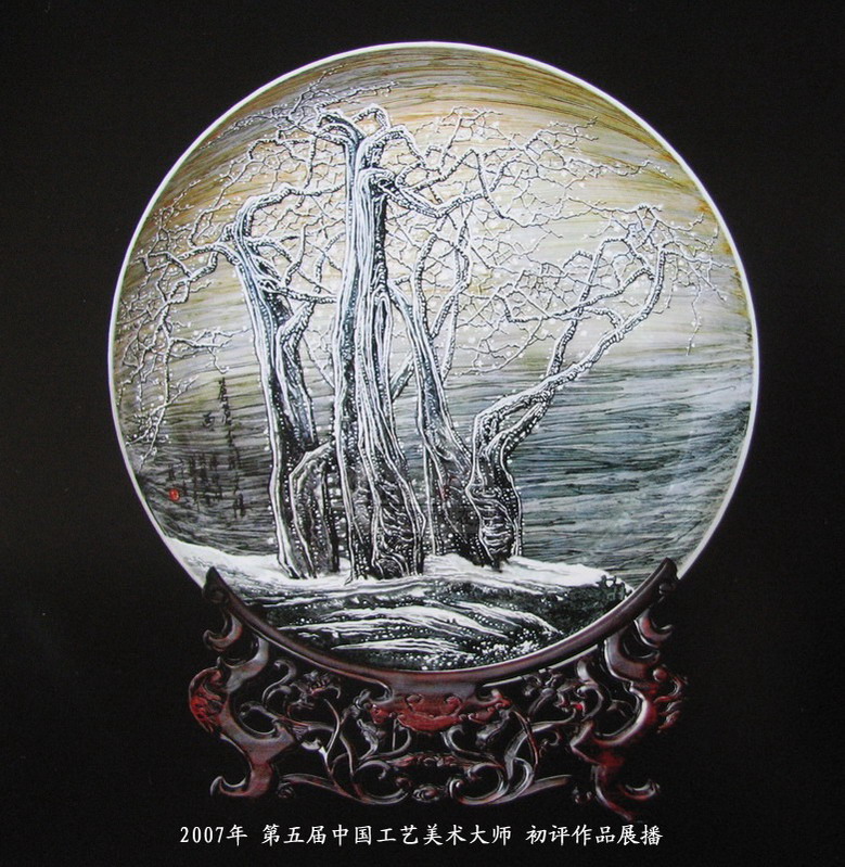 | 07年国大师初评作品 彩色粉彩雪景瓷盘《苍苍玉树夕阳西》沈盛生 | |||||