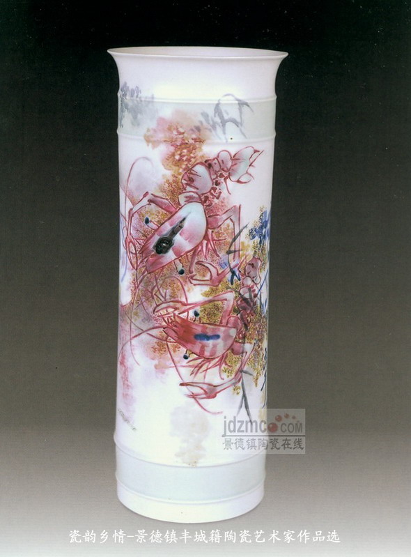[图文]景德镇丰城籍艺术家-釉上彩《虾》瓶 作者:黄海云         ★★★ 【字体: