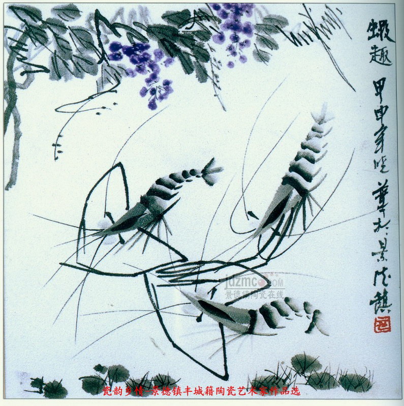 | 景德镇丰城籍艺术家 《虾趣》瓷板 作者:熊晓华 | |||||