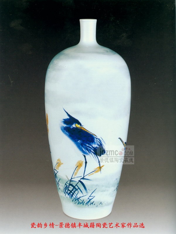 | 景德镇丰城籍艺术家 釉下综合彩《月鹭》瓶 作者:陈军 | |||||