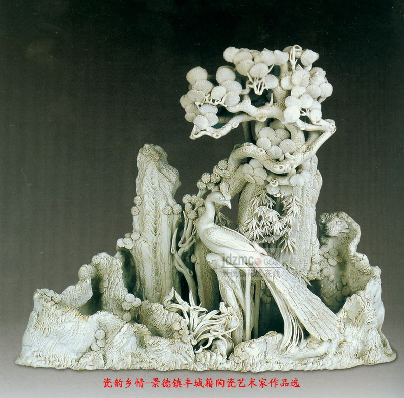 | 景德镇丰城籍艺术家 素胎《孔雀石松》镂雕 作者:徐顺元 已故 | |||||