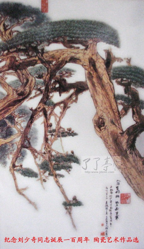 | 纪念刘少奇同志诞辰一百周年 岁寒松柏(瓷板)作者:徐庆庚 | |||||