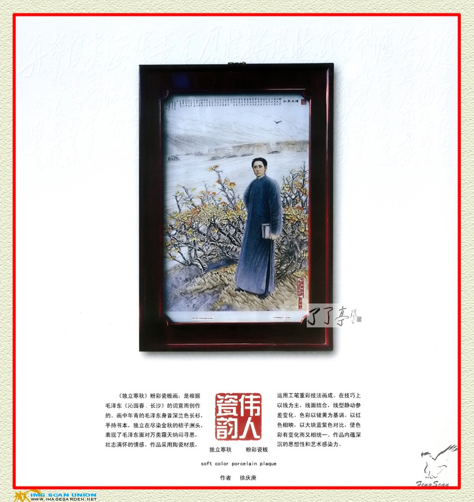 | 纪念毛泽东百年诞辰 《独立寒秋》 粉彩瓷板 作者:徐庆庚 | |||||