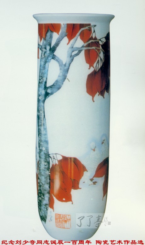 | 纪念刘少奇同志诞辰一百周年 霜重色愈浓(瓷瓶)作者:余毅 | |||||