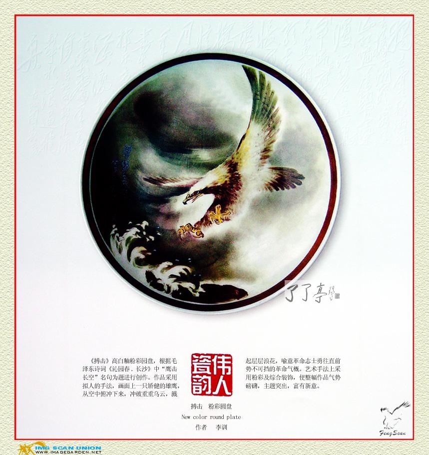 | 纪念毛泽东百年诞辰 《搏击》 粉彩圆盘 作者:李训 | |||||