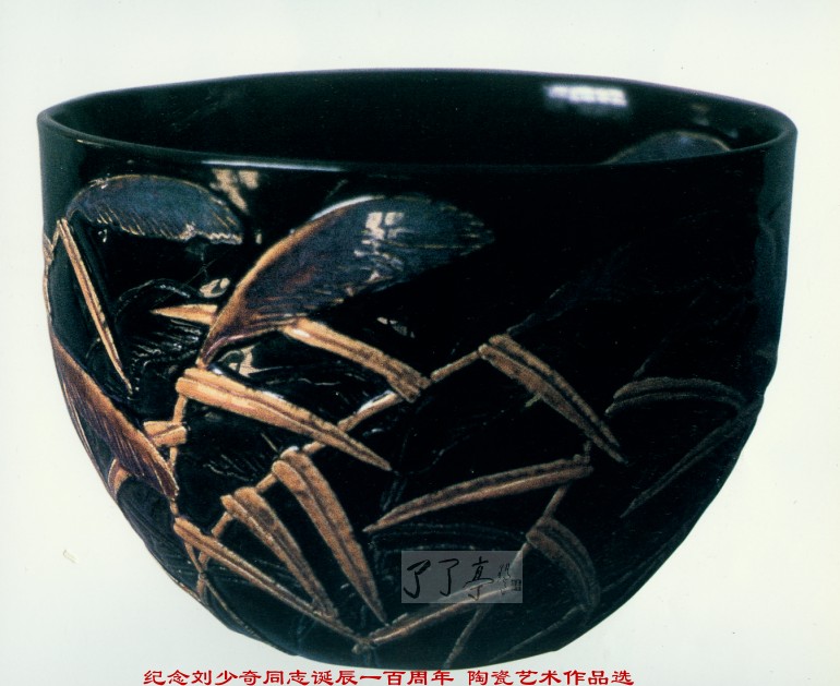 | 纪念刘少奇同志诞辰一百周年 芦花情-微山湖的思念(瓷钵)作者:解强 | |||||