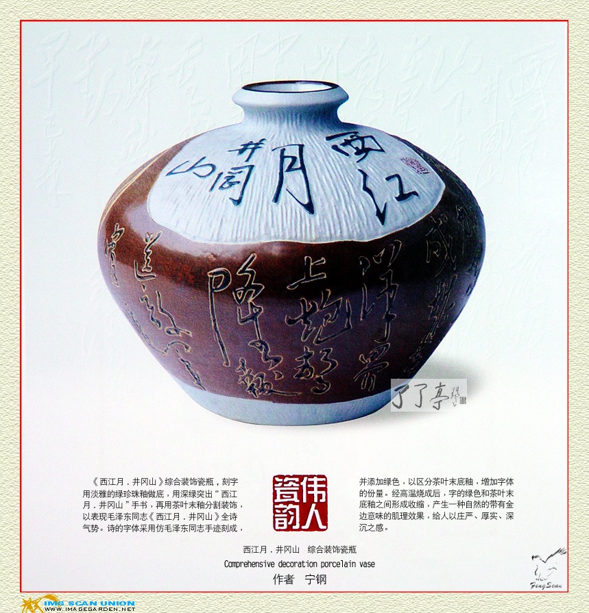 纪念毛泽东百年诞辰 《西江月·井冈山》 综合装饰瓷瓶 作者:宁钢