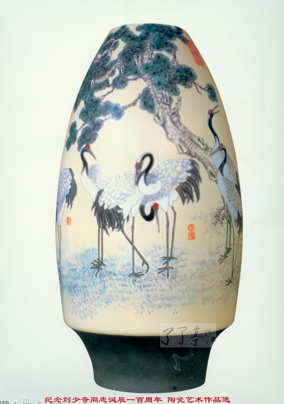 | 纪念刘少奇同志诞辰一百周年 松鹤恋(瓷瓶)作者:王淑明 | |||||