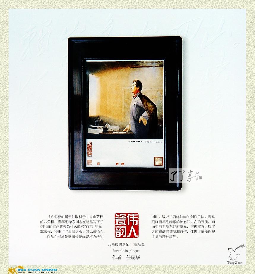 | 纪念毛泽东百年诞辰 《八角楼的曙光》瓷板像 作者:任瑞华 | |||||