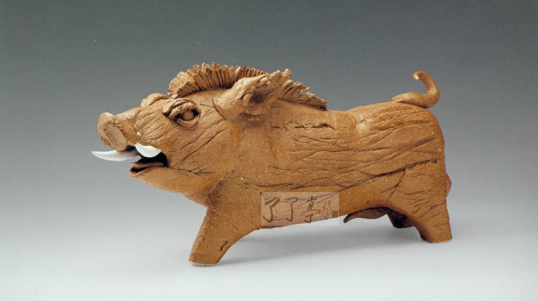 雪豹 泥与火的艺术是天人合一的艺术,是人工加自然的艺术一次偶然的停电,却产生了意想下到的特殊效果,雪豹,就是这样产生的.本要烧1300摄氏度的高温,却在1100℃停电,原以为完蛋了,可开窑门一看,眼前却是一特殊效果,从此得出结沦:釉色完整光亮-不是唯一的效果,不光亮且有着殁缺肌埋的纹样更觉耐看;以后便有意的追求更多的残缺肌理效果。这是作者的得意之作;作品产生残缺.灰白的裂纹纹理的特殊效果,很象雪豹,因而得名;作品造型简洁,头颈竖起与翘起的尾巴形政“u”字形,前后呼应.其形象凶掹而又敏捷,它似乎在注视看什么,一旦有猎物出现,瞬间就会锰扑过去.