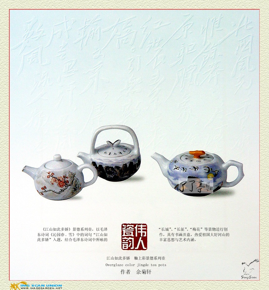 | 纪念毛泽东百年诞辰 江山如此多娇 釉上彩景德系列壶 作者:余菊轩 | |||||