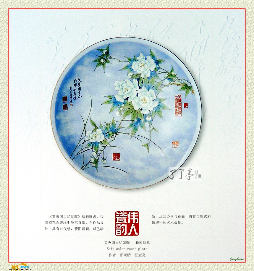 | 纪念毛泽东百年诞辰 芙蓉国里尽朝晖 粉彩圆盘 作者:彭元清 江宏亮 | |||||