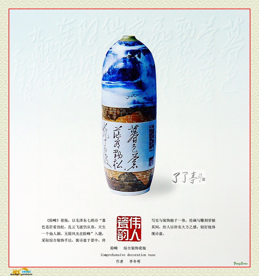 | 纪念毛泽东百年诞辰 险峰 综合装饰瓷瓶 作者:李冬明 | |||||