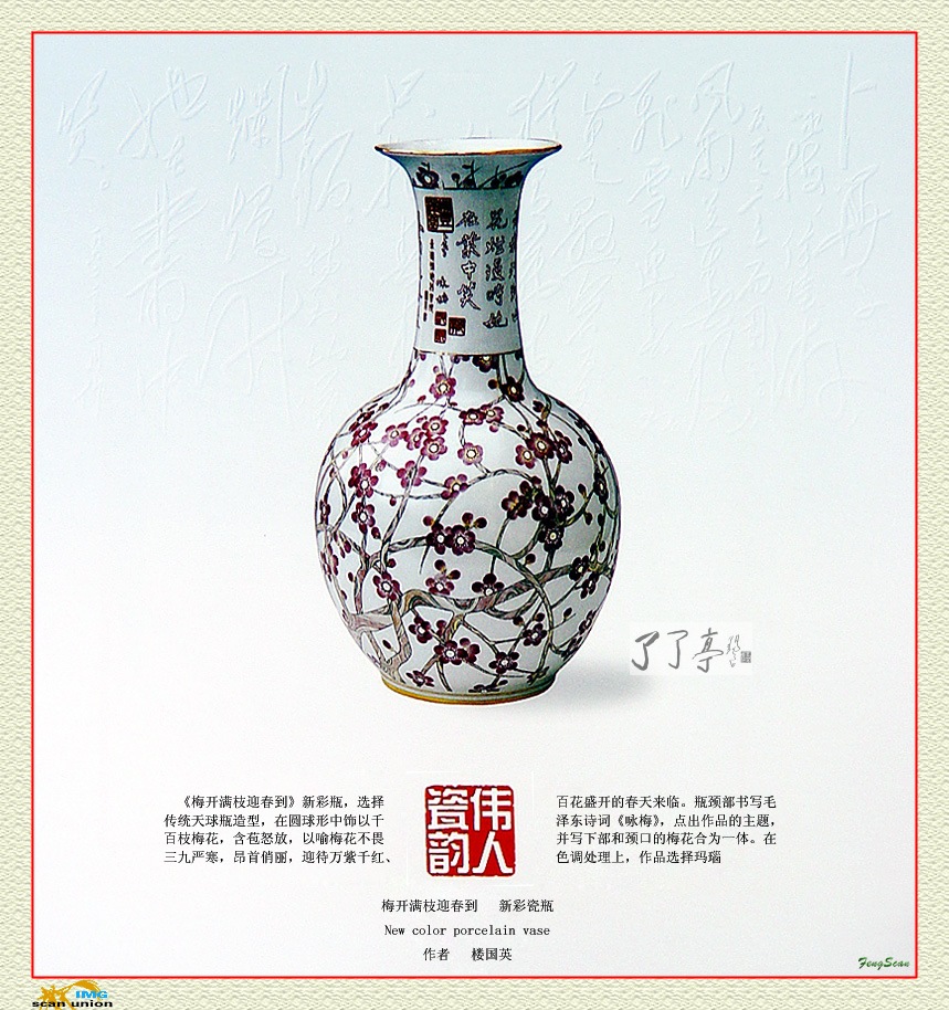 纪念毛泽东百年诞辰 梅开满枝迎春到 新彩瓷瓶 作者:楼国英 |