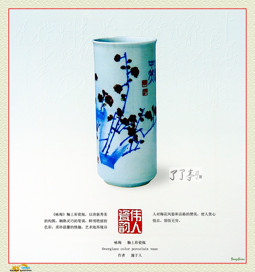 | 纪念毛泽东百年诞辰 咏梅 釉上彩瓷瓶 作者:施于人 | |||||