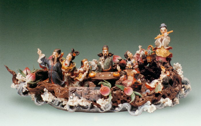 曾山东 ● 江西丰城人,1925年出生於景德镇。他是一代瓷雕大师一一“瓷雕曾”曾龙升的传人。幼时的曾山东,天资聪慧,喜动好学,虽六岁时不慎落水造成聋哑之憾,然未挫其继承父业学艺之志,在其父言传身教之下,他学得一手绝活。十四岁时他即显露才华,相继创作出瓷雕作品 “关公”、 “如来佛”、 “华佗”等。此後在漫长的艺术实践中,他广泛吸收传统瓷雕技艺之精华,刻意求精。在其父悉心的指导下,脱颖而出。在历史人物、神话故事等传统人物创作方面更是独树一帜。他所创作的“天女散花”、 “降龙仕女”、“嫦娥奔月”、 “麻姑献寿”, “摘花仙女”、 “站凤观音”等瓷雕作品, 已是为人们所熟知,并倍受称道 ` `的瓷雕之珍品。