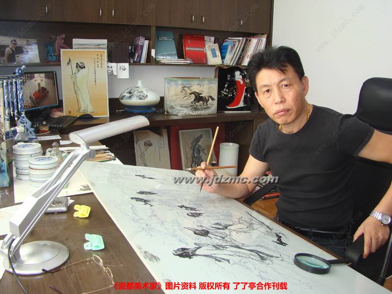 李泽靖 男,1963年5月26日生于景德镇,大学本科,高级工艺美术师。现任教于景德镇市技工学校陶瓷美术专业。受聘为香港中联国际拍卖公司陶瓷鉴赏专家,香港天下文化艺术交流中心艺术顾问,珠山书画院院士,颐泽居陶瓷艺术工作室主人。由于祖父和父亲是景德镇”红店佬”,是老一辈陶瓷彩绘艺匠。本人深受祖辈陶瓷绘画影响从小酷爱绘画,并于1983年考入景德镇市技工学校陶瓷美术专业学习,后又在陶瓷职工大学深造。经过近三十年的专心努力和坚苦学习,在陶瓷绘画艺术创作中,融汇各家所长,以扎实的传统绘画功底与现代陶瓷技艺相结合,使其作品具有独特的艺术效果,特别是其首创青花分水与雍正粉彩相结合的“青花分水重彩”陶瓷艺术作品,深受国内外陶瓷爱好者和收藏家的青睐。