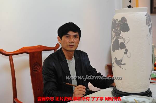 人物名片:李海林,男,1963年出生于景德镇、大专毕业,现从事陶瓷艺术创作。江西省高级工艺美术师,景德镇非物质文化遗产釉下五彩传承人,系中国工艺美术学会会员、江西省工艺美术学会会员,景德镇美术家协会会员,原红旗瓷厂釉下五彩研究所从事设计工作,从事美术工作20多年,作品曾多次赴东南亚各国及港澳参展。