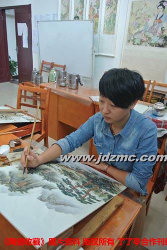 王萍萍:1988年出生于江西南昌,2009年毕业于江西科技师范学院美术专业。毕业后刻苦钻研瓷上绘画,2011年3月进入南昌瓷板画研究中心学习,跟随李春敏学习粉彩山水。 因自幼酷爱美术,打下了一定的美术基础。进入中心在李春敏老师的细心栽培下,在粉彩山水方面取得较大进步,虽从艺时间不长,但自身具有刻苦钻研的学习精神,领悟到老师所传授艺术技法,其绘画独具一格,色彩和谐,意境深远,得到中心领导和老师的一致好评!