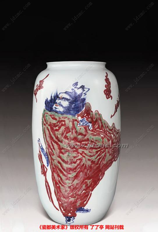 青花釉里红《钟馗神威》获上海工艺美术大师精品博览会“金奖”;