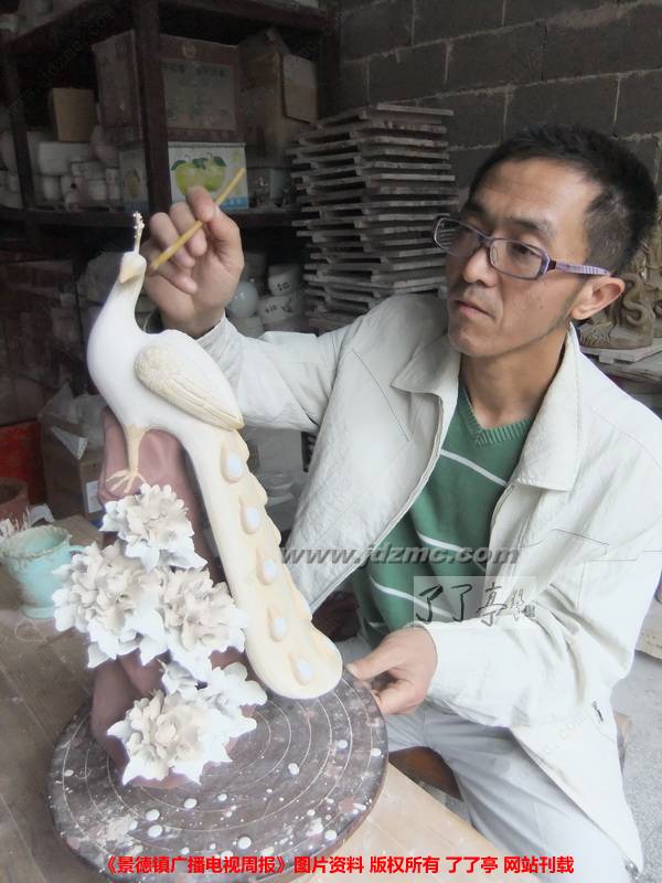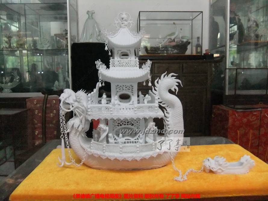 近二十年来,张军秉承家学,在父亲的熏陶和指点下,创作出很多优秀的作品,比如镂雕“龙船”、捏掉“孔牡争艳”、“和谐富贵”、“前程似锦”,深受陶瓷爱好者的喜爱,在传承祖传绝技镂雕、捏掉基础上,构图新颖,别具一格,再加上勤奋努力,使他在雕坛中脱颖而出。近期所创作的大型瓷雕“和谐富贵”精雕细捏,堪称一绝,被澳门收藏家收藏。