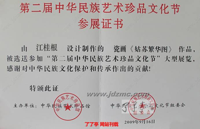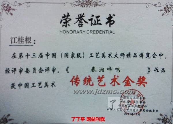 江桂根,一九七八年出生于景德镇陶瓷世家,景德镇高级陶瓷美术师,高级技师,景德镇陶瓷美术家协会会员。 自幼受到陶瓷艺术的熏陶,十八岁便随艺术瓷厂老艺人学习陶瓷绘画,近年有幸得到数位知名大师的悉心指导,经过勤习苦练,在陶瓷美术创作上已自成一格。对山水,人物,花鸟,石竹,走兽等画面均有较高造诣,青花写意绘画有很多独特之处,画面生动细腻,清新淡雅,使观者久久不能忘怀。多次参加大型展览并获奖,深受广大陶瓷爱好者,收藏家的喜爱。