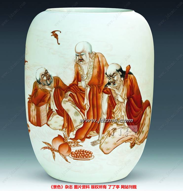 从绘写和塑造经典型传统性的陶瓷人物形象人手,厂拜名家高手,遍览名画名作,在观察和写生中,描摹世态人情,逐步形成了具有鲜明个性色彩的人数画风。,