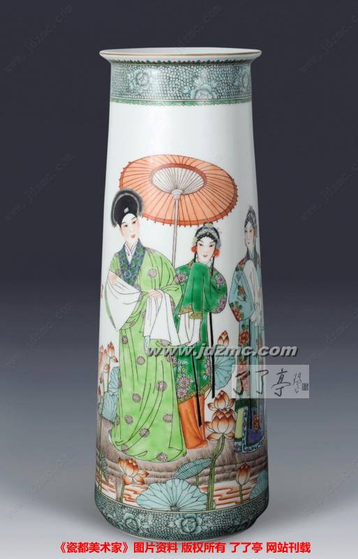 张万莲: 江西省首席技师,景德镇市技能大师,高级技师。1997 年毕业于景德镇职工大学。现为中国国画院江西分院院士,江西省美术家协会会员,景德镇市青年美术家协会会员。擅长古彩花鸟人物,新彩画釉下综合装饰。参加过国内外艺术作品展。受海内外收藏家喜爱。