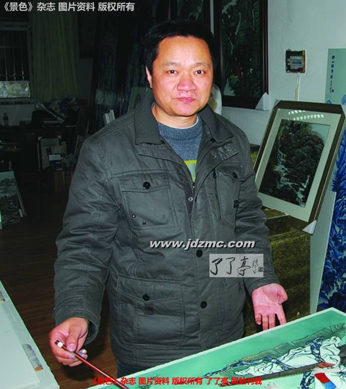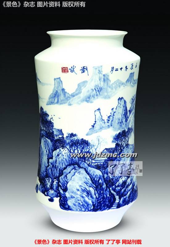 刘武: 景德镇青花陶瓷研究所特聘画师,生于1966年,现为中国美协会员、高级工艺美术师,擅长工笔山水画,其作品多次获奖,被社会名流、文化机构广泛收藏,作品既有国画韵味,又有瓷画特点,用笔洒脱,又不失细腻灵动,构图严谨,又不乏大气,既有传统民间的陶艺特点又有时代的光彩和个人特点,追求高硕、古典时尚,他的作品、画面气象自然、幽静、又有灵气,稳重而又洒脱,有作我国传统禅定笔墨的韵律,其作品深受海内外收藏爱好者的好评和收藏。