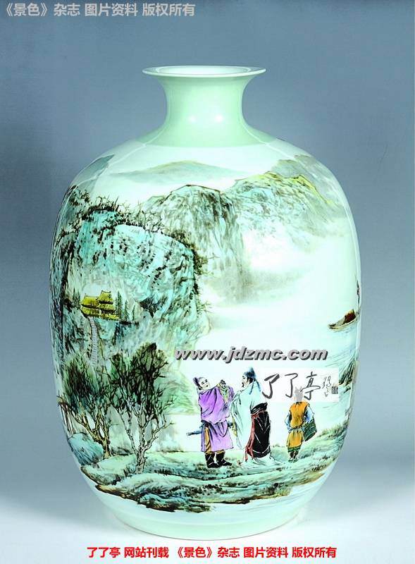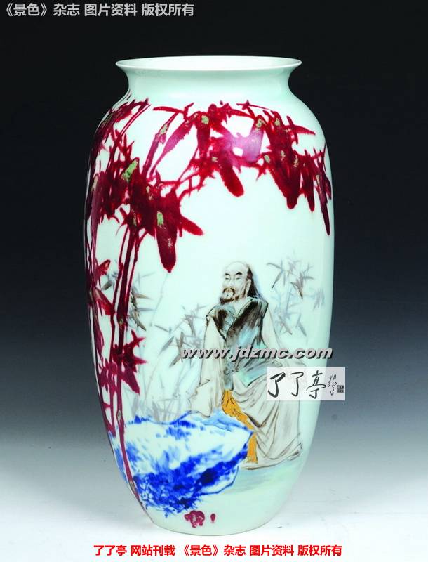 众所周知,高温颜色釉瓷器在烧制过程中变幻神秘莫测,陶瓷艺术家们对这门技艺是爱恨交加,然而也正是因为它的诸多不可控因素和巨大的窑变潜力,让徐金和更加为此着迷。对他来说,有挑战才有创新和进步的可能。多年来,徐金和通过不断的努力和无数的尝试,对陶瓷高温颜色釉的研究颇有心得。每个瓷器的设计他都力求创新,画面构思精细,色彩方面匠心独运,再加上独特的现代表现手法,形成了自己独具一格的画风。