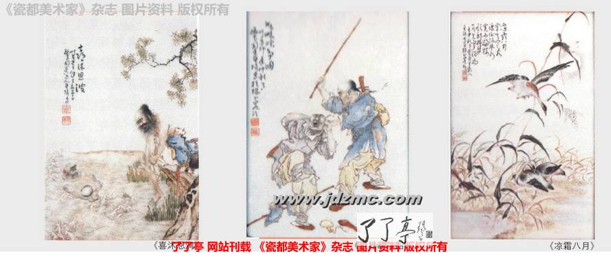 王琦最初跟邓碧珊学画,继而又学钱吉生,最后改学黄慎,他的画风狂放崎岖,典雅飘逸。尽管有人说他始终保留着黄慎的画风,未自成一格,但他却是率先在陶瓷绘上使用西洋画技法的人。对于王琦的瓷画,有人评说为:笔触精细,毛发历历,表情夸张,场景生动,十分有趣。对于王琦本人,更多人所谈的是他为“珠山八友”之首。王琦不仅是在画风、画技上不断转变,力求提高,在创作中是极有思想的。