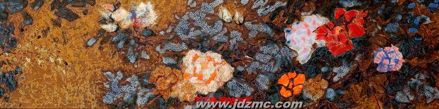 这个家园,既是地里空间意义上的家园,也是文化精神意义上的家园。纵观潘寨民近年创作题材,无论是花卉、乡景、江南的季节嬗变、还是西北高原、古文明遗址、海洋潮汐,等等,从个人的小家园到人类的大家园,无一不指向某种自然和社会意义的周而复始生命轮回。当我们的目光漫游在这些画面里,当我们端视这些“物的诗性”,其实是在端视我们自己的精神镜像。我们能够确切感知到他们呈现的不仅仅是自然风光的描绘,而是以此反衬、凸显了我们当下的重大困境,并对这种危机给予审美目的的探求。把对具体问题的思考悬置于自由意志的无限性之中,寻求人与自然、人与人、人自身内部的和谐途径。这些深厚有力的画面里回荡着一种荷尔德林式的吟唱、诉说与警示——我们需要在这个时候真正倡导在更大更深一个层面上的重回乡土,感受生命大地的精神复归。同样是出自乔纳森-贝特的一句话:“没有大地尺度,我们就不复存在。”
