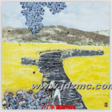在旷野的记忆当中,故乡没有恢弘的背景,亲切的小土坡、蜿蜒的阡陌小道和那条似乎永远在路上等待乡人路过的狗,但恰恰是因为这份平凡与质朴而在旷野的心中留有最深的回味空间。陌上花开,温柔的微风里飘扬着淡淡的香,家乡即是这样一种氤氲四野的芬芳,在旷野的艺术表达中,这种气息或许是他最想捕捉的。其实每一个怀乡思源者,一生都在琢磨这其中的味道,她像一股股吹过你生命里的暖风,却难以赋形,因而在异乡的旅途上,我们曾无数次咀嚼、思量,在内心里温柔的位置珍藏。