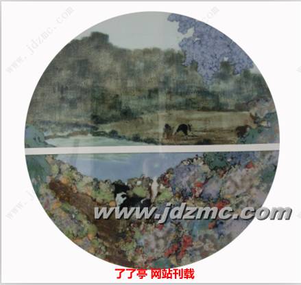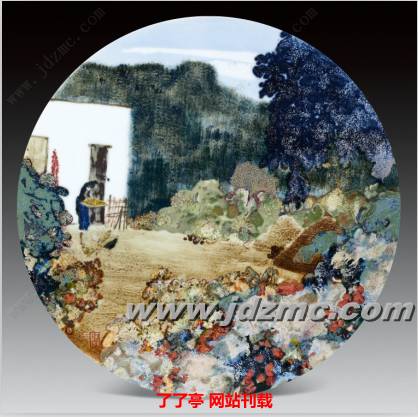 其实他起初在湖南从事油画创作已颇有发展的空间,种种机缘让他来到了景德镇,而与高温颜色釉绘画创作结缘,今天他又以他潜心探索的艺术创作方式来怀念自己的故土。一面是为艺术而远行,一面是以艺术而回归,艺术成为了他走向世界的路径,也成了他抵达生命源点的方式。在艺术的自由世界里,他跳脱现代生活节奏下的藩篱,以心中所藏一片净土,来承载他对于乡土的记忆。那外婆桥下的溪水叮鸣,麦田里一望无际的金黄和那瓜棚下的果香都是他一生将怀念不尽的味道….
