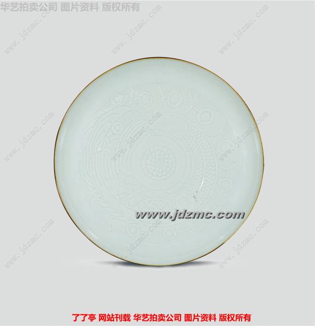 图案设计者以传统凤戏牡丹的图案为蓝本,结合时代特色和当代审美内涵设计而成,由部所刻花高手以刀代笔,刻于瓷盘之上,此盘器型端庄大气,线条流畅遒劲有力,雕刻深浅得当,极具大家风范。