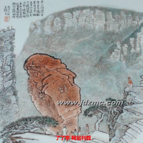 王锡良以山水、人物画最为擅长。他中年变法,从绘画基础入手,练素描画速写,深入生活,师法自然,博览众长。涉足景德镇的乡间林野,远游祖国名山大川,收集了丰富的第一手画稿,开阔了视野,拓宽了思路,丰富了创作源泉,不断推出新作。他的作品大处作眼有气势,小处观之有意味,因善画中国画,刻意在陶瓷作品中揉进中国画讲求神韵、计白当黑的形式美感。王锡良的作品,讲究立意,注重装饰,追求静水流深的艺术效果。其用笔繁简有度、设色清雅丰润、构图巧妙自然。此作品器型端庄,器身暗刻芙蓉花,通体施青釉,凸显素雅气质,瓶两边开光,开光出立意谋篇之功力令人叫绝!画面中远山巍峨,若隐若现。画心处绘壮丽山河。神游于此的华夏儿女喜形于色,陶醉于庐山的秀美风光之中。此作之艺术感染力直叫人拍案叫绝。