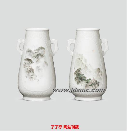 庐山二景·颜色釉刻花粉彩双耳瓶