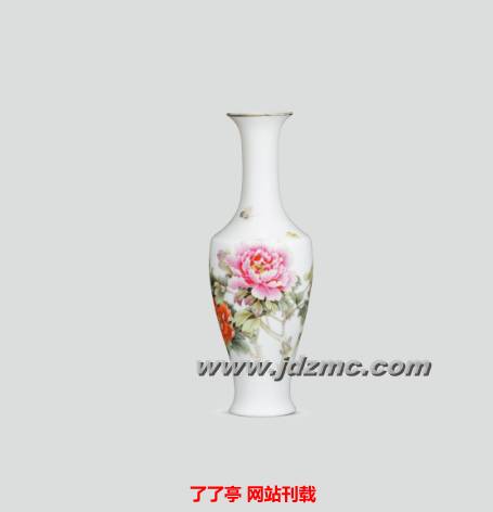 此作以优质高白泥手工拉坯成型,通体施高白釉,剔透犹如白玉。作者以国画工笔出牡丹,构图严谨,疏密得当,画中枝繁叶茂,牡丹盛开,蝴蝶翩翩穿插其中,一派欣欣向荣之场景,尽显雅致高贵荣华之气。