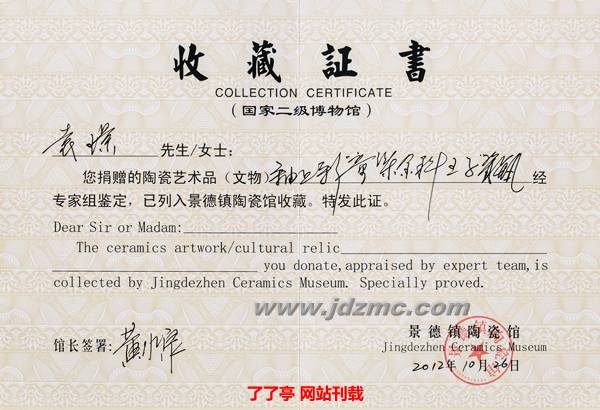2012年作品《童趣·金科玉子》被景德镇陶瓷馆收藏;