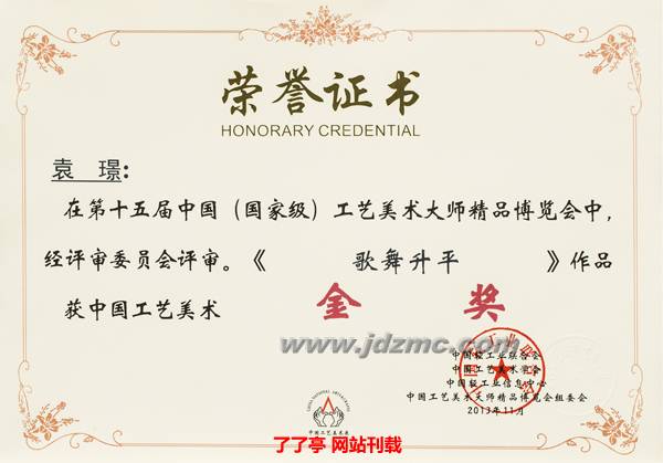 2013年作品《童趣·歌舞升平》获第十五届中国工艺美术大师精品展“金奖”;